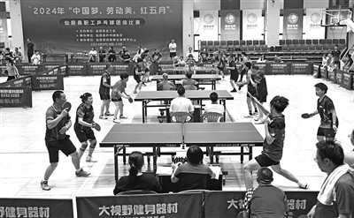 为深入推进全民健身运动,丰富全县职工业余文化生活,增强职工身体素质,日前,仙居县总工会开展以“中国梦、劳动美”为主题的全县职工乒乓球团体比赛。29个代表队、170多名运动员参加比赛。图为比赛现场。