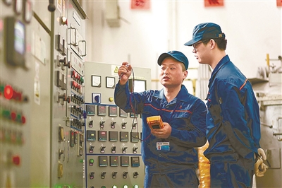 | 大国工匠年度人物罗明浩(左)积极参与国产设备创新创造。 |