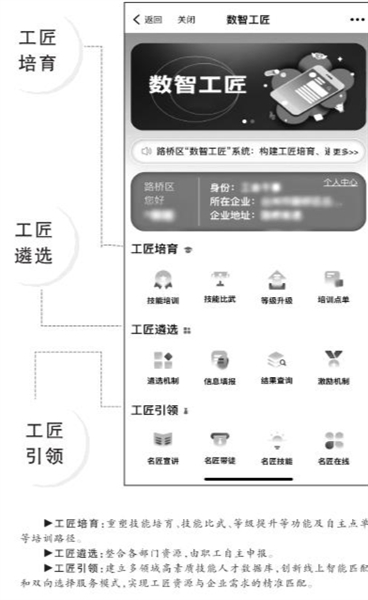 为解决人才筛选难、工匠成长难、作用发挥难三大难题,自2021年以来,路桥区总工会创新探索推出“数智工匠”应用。从最初只有“工匠遴选”子场景,到如今新增“工匠培育”“工匠引领”子场景,该应用为广大产业工人构建了一条“选、育、用”全链条成长成才体系。
