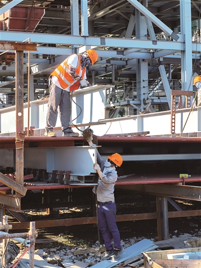 近日下午(16时左右),记者走进位于杭州市萧山绿色智造产业园的浙江荣翔热力有限公司建设工地,该公司的绿色智能动力提升项目安装工程由浙江省工业设备安装集团有限公司四分公司承建,目前,约有600名安装工人在一线火热施工。记者邹伟锋 摄