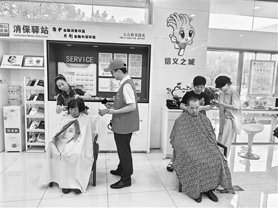 | 金东区美容美发行业联合工会专业理发师为户外劳动者免费理发。 |