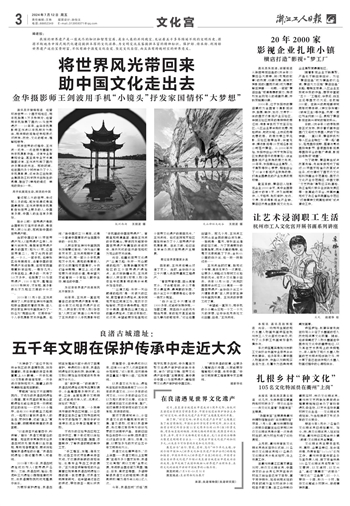良渚文化也蜚声海外。“云上泽国——良渚文明线上主题展”在海外多个国家发布,良渚文化亮相“何以文明”全球巡展,走进联合国总部及英国、瑞士、日本、肯尼亚等国。多语种解读良渚文化的短视频《良渚微讲坛》触及海外受众近2亿人次。