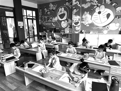 ▲首期暑期托管班课堂上,孩子们在学画画。