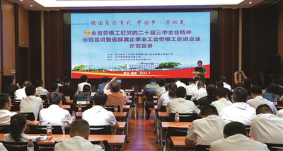 本报讯 记者金钧胤报道 从谈全面深化改革到谈中国式现代化,从谈新质生产力到谈人才培育……7月19日,全省劳模工匠党的二十届三中全会精神示范宣讲暨省部属企事业工会劳模工匠示范宣讲活动,在浙江菲达环保科技股份有限公司举行。来自全省不同行业的7位劳模工匠,为现场职工们带来一场冒热气、接地气的党的二十届三中全会精神宣讲。