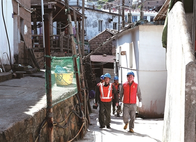 | 电力小分队携带着专业设备,穿梭在狭窄的渔村巷道。 |