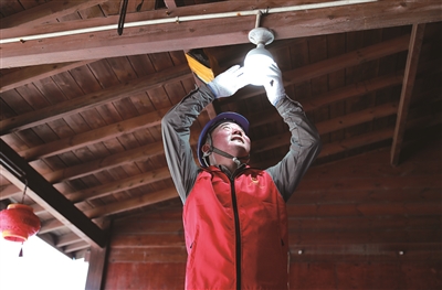 | 电力小分队为新开民宿安装接户线和电表。 |