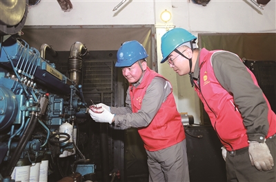| 电力小分队对岛上二次供电的发电机组进行维护。 |