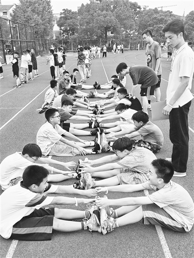 | 夏令营中,孩子们正在进行运动。 |