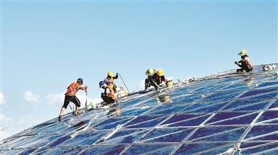 7月28日,德清县地信小镇联合国地理信息会址配套工程项目建设现场,工人冒着高温进行施工作业。连日来,面对持续的高温天气,德清县各重点工程项目施工单位合理安排、调整施工作业时间,错峰施工,抢抓有利施工期,全力以赴保障工程建设进度。
