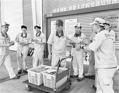 | “杭州中车”工会为一线职工送清凉解暑饮品。 |