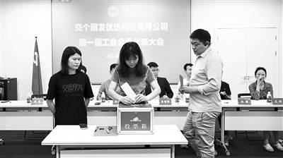 本报讯 记者吴晓静 通讯员孔潇若报道 近日,交个朋友优选科技有限公司(以下简称“交个朋友”)第一届工会会员代表大会暨第一届职工代表大会顺利召开。位于杭州市高新区(滨江)的交个朋友,是直播电商行业的头部企业。工会的成立,标志着该公司在构建和谐劳动关系方面迈出了坚实的一步,也为整个行业树立了新的标杆。