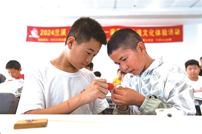 昨日,2024“石榴籽祖国行、疆浙少年一家亲”温宿·兰溪青少年夏令营在兰溪市开营,两地青少年开展了结对仪式、非遗文化体验、参观博物馆、体验畲族文化民俗等丰富多彩的活动。图为两地青少年共同体验“捏泥人”非遗文化。