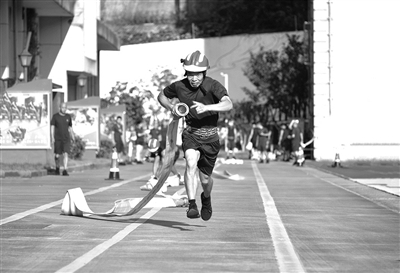 3000米徒手跑、单人攀登6米拉梯、手持灭火器快速灭火……近日,泰顺县总工会联合县消防救援大队举办第四届“工匠杯”社会消防组织技能竞赛。来自全县的11支乡镇专职消防队、8支志愿消防队,共120余人参加了“硬核”比拼。本次活动旨在进一步提升全县消防应急处置能力和联动作战水平。图为比拼现场。