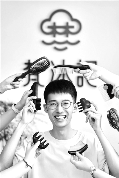 经过多次市场调研,陈浩归发现,很多年轻人因为熬夜压力大,导致脱发、发际线后移,对头皮养生有需求。能不能打造一款可以更好地按摩头皮的梳子?经过两年设计打磨,“梵沐记”推出了第一款产品“抹云梳”,这款梳子梳背像云朵,只有4根小指粗的梳齿,模样很萌,乍一看与传统梳子像是“远房亲戚”。