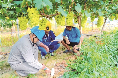 “这是我们的电力便民服务卡,上面有我们的电话,有什么用电需求,可以随时联系我们。”8月23日,在杭州临平南苑街道杨老四葡萄采摘园,国网杭州市临平区供电公司工作人员正在了解葡萄园的用电需求,细查浇灌配电设施,并更换隐患线路和设备。