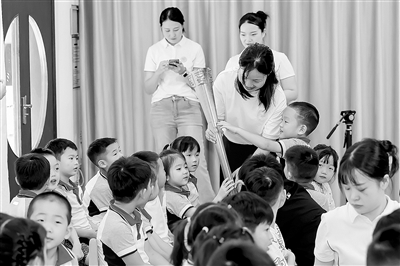 | “哇,是亚运火炬!”小朋友们近距离感受荣耀与责任。 |