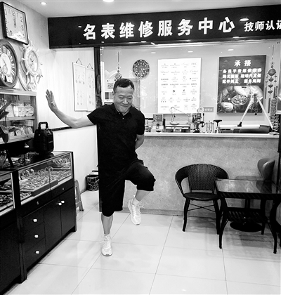 老陈的钟表店毗邻西门农贸市场,商户众多,人流量大。“大家每天看到老陈在店里跳舞,起初还觉得新奇,后来都‘习以为常’了。看到他跳得那么开心,我们也想跟着动起来。”街道路段管理员高阿姨说。