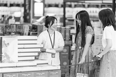 位于金华市金东区孝顺镇的金义综合保税区进口商品直购中心是目前金华市跨境新零售线下规模最大、品类最多的购物中心。进口母婴、食品、家居生活、洗护美妆、酒类及保健产品等来自50多个国家的全品类商品琳琅满目,让消费者在家门口就能直购全球商品。图为顾客正在选购来自世界各国的跨境商品。