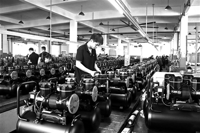 近日,位于温岭市箬横镇水岸工业园区的浙江奥利达气动工具股份有限公司生产车间内,职工们正抓紧速度包装新出产的无油空压机。