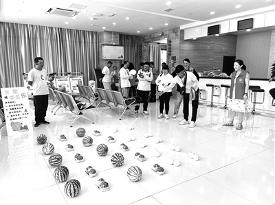 | 户外劳动者在站点参与工会组织的“水果瓜瓜乐”活动。 |