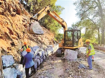 近日,开化县桃下线星口路段,开化县公路港航与运输管理中心的养护人员和机械,正头顶烈日抓紧施工,全力修筑挡墙,为县道公路筑起交通安全防线,确保公路畅通和沿线群众出行平安。