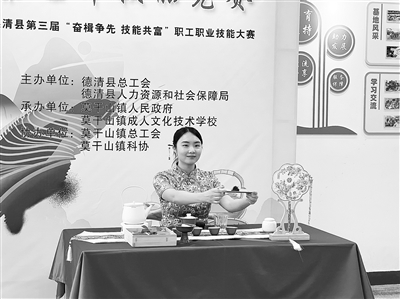 本报讯 记者寿慧桢 通讯员沈丽娟报道 为弘扬茶文化,提升茶行业职工技能水平,给广大茶艺爱好者提供一个展示才华、交流学习的平台,近日,德清县第三届“奋楫争先 技能共富”职工职业技能大赛茶艺师技能竞赛在莫干山镇火热开赛。
