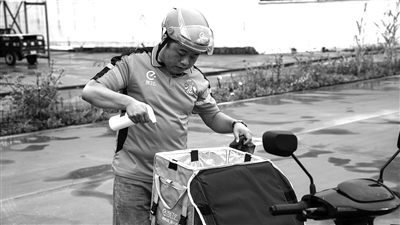 | ▲比赛中,参赛选手为外卖箱进行消毒。 |