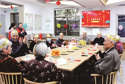 本次生日宴为社区10月生日的70岁以上独居老人举办。寿星们齐聚一堂,吹蜡烛、吃蛋糕,青年志愿者送上了公司纪念品,祝福老人健康平安。