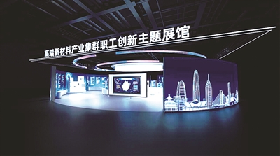 高端新材料产业集群职工创新主题展馆以“向‘新’而行,以‘材’赋能”为口号,展厅分为创“材”立志展区、铸“材”造士展区、育“材”树德展区三大主题篇章,以62件展品和45个创新事迹为主线,展示了广大职工在这片创新热土上的奋斗故事。