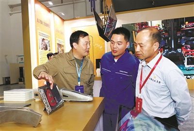 | 陈立虎向张冬伟介绍自己的焊接作品。 |