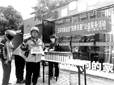 | 玉环工会在“爱心驿站”开展“四季关爱”公益服务活动。 |