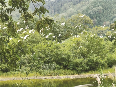昨日,笔者在开化县华埠镇龙山溪畔看到,成群的白鹭或在溪边的树林间栖息,或自由在空中飞翔。地处钱塘江源头的开化是国家生态县,森林覆盖率高达81.12%,出境水质Ⅰ、Ⅱ类以上占比99.7%。