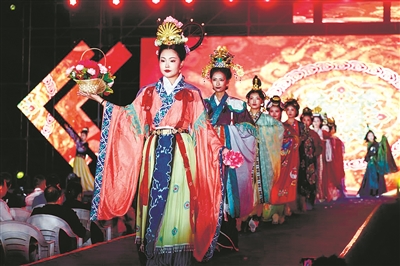 10月21日,浙江省美发美容行业职业技能大赛启动仪式在建德市举行。来自高校、企业的170名演职人员将美发美容与艺术相融合,为现场观众献上了一场精美绝伦的时尚秀。图为演员在启动仪式上展示不同时代的发饰和服装造型。