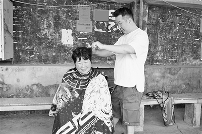 老人纷纷夸赞这个他们看着长大的村里娃。“他没来,我就找到他店里去理发。他来了,更方便。”有位老人说。