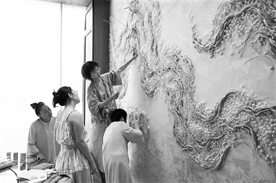 今年6月底,台绣将一件长约6米、高3米的《潺潺》作品送往杭州中心四季酒店。《潺潺》被挂在酒店大堂,作为接待背景墙。