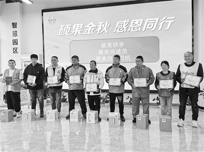 活动现场,为沈建新、吴国亮、赵庆洪等9位新就业形态劳动者颁发“最美骑手”“最美快递员”“最美货运司机”荣誉证书,现场掌声雷动。“人活着总要做点有意义的事情!”湖州大匠智能科技有限公司职工赵庆洪是一名外卖小哥,在送餐途中曾救过一位被肇事逃逸车辆撞伤的市民。尽管因此延误了送餐时间,但赵庆洪觉得这一切都是值得的。和赵庆洪一样,所有受到表彰的新就业形态劳动者都在用双脚丈量着城市的距离,用双手编织着服务的温情。