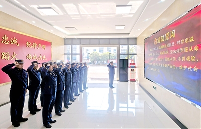 为营造学习践行训词、忠诚履行使命的浓厚氛围,11月9日,衢州开发区消防救援大队组织开展活动,全体队员紧握拳头、昂首挺胸,庄严宣誓:“我志愿加入国家消防救援队伍,对党忠诚,纪律严明,赴汤蹈火,竭诚为民……”