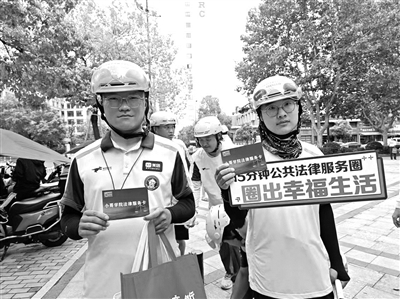 近年来,杭州市西湖区组建区、镇街两级“帮哥团”法律服务志愿队,引入公益律师、调解员、公证员,重点围绕新业态从业人员关心的合同签订、劳动时间、交通安全、工伤认定等主题,为其提供多层次的法律服务。同时,开展送法入快递站点活动,开展专题讲座,派发法治“大礼包”,发放公民法治素养提升系列读本、杭州市公民法治素养基准等宣传资料,解答相关法律咨询。