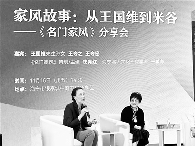 11月15日~19日,遇见潮城“书式生活”——海宁市首届主题书展在嘉兴海宁举行,开幕式上,书展首场主题活动“家风故事:从王国维到米谷——《名门家风》分享会”举行。