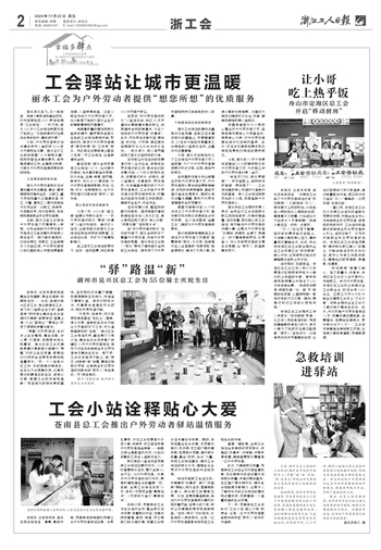 去年以来,苍南县总工会与社会组织合作,整合服务站点资源,丰富服务内容,加强与城市管理、邮政、电信、环卫等部门的沟通协调,完善工会服务站点建设与布局。同时,深挖和整合社会资源,与苍南农商行、执法局、环卫部门等共建共享,拓宽服务范围,提升服务质量,融合“政府+社会”力量,共筑工会驿站基石,提升工会驿站的服务水平,增强社会各界对户外劳动者的关注和支持。