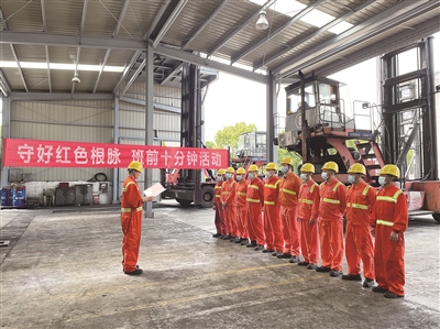 宁波舟山港股份有限公司北仑第二集装箱码头分公司聚焦“有用、有趣、有益”,让职工“想听、爱听、常听”,通过“守好红色根脉·班前十分钟活动”,激发广大职工共振、共情、共鸣。