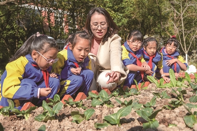 昨日,在湖州市德清县实验学校,老师带着学生们学习蔬菜种植知识。近年来,该校大力推进“生态劳动课堂”建设,充分利用校园内的闲置地块开辟校园农耕园、生态池等劳动实践基地,让学生在实践课及课余时间进行种植和养护,体验劳动的艰辛与快乐,培养学生从小爱劳动、会劳动,促进学生劳动实践常态化。