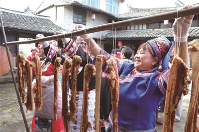 日前,温岭市箬横镇“石榴红”家园的各族职工们齐聚一堂,腌制、风晒了近百斤五花肉和肉肠,在“第二故乡”留下了美妙的“娘家”风味。
