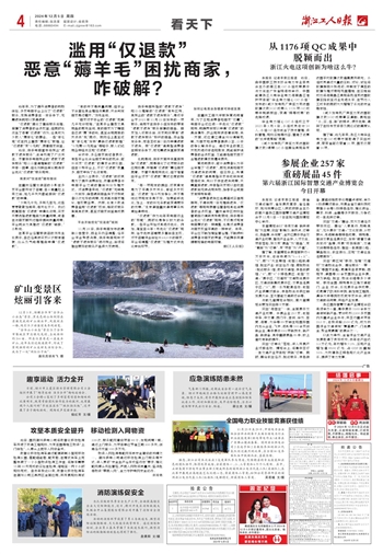 12月3日,俯瞰金华市“金华山小冰岛”景区,黑灰色的山体倒影在清澈见底的矿山湖泊中,风貌别具一格,吸引不少游客前来参观游览。