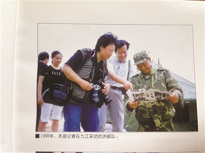 | 1998年 本报记者张斌(右三)在九江采访抗洪部队。 |