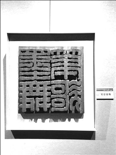 此次展览展出了《海边》《曾经沧海》等17幅刻字作品,都展现了黄祥游“七分天成,三分雕琢”的创作理念,他巧妙地将海浪长年侵蚀的痕迹、钉洞锈迹等自然元素融入其中。在雕刻手法上,黄祥游不仅吸收了甲骨文、碑刻石刻等艺术营养,还创新采用笔画借用、以形代字等独特手法,赋予了作品独特的生命力。