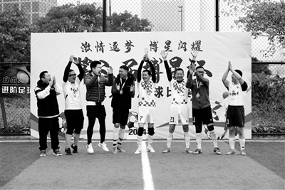 公司足球爱好者们组成4支队伍,在绿茵场展开激烈角逐,获奖队伍由公司领导颁发奖杯和证书。