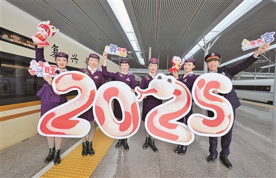 近日,辞旧迎新之际,杭州客运段高铁乘务员们一起营造喜气洋洋的氛围,在杭州东站迎接2025年的到来。