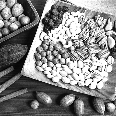 零食首选坚果。坚果中含有丰富的维生素E、B族维生素以及铁、锌、钙等矿物质,还有一定量的蛋白质,都能帮助人们抵抗寒冷。