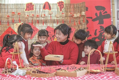 1月6日,湖州市德清县钟管镇中心幼儿园开展“迎腊八 品民俗”主题活动,小朋友们通过腌腊八蒜、腊肉、识八宝、做腊八粥等民俗活动,了解腊八习俗,感受中国传统文化魅力。